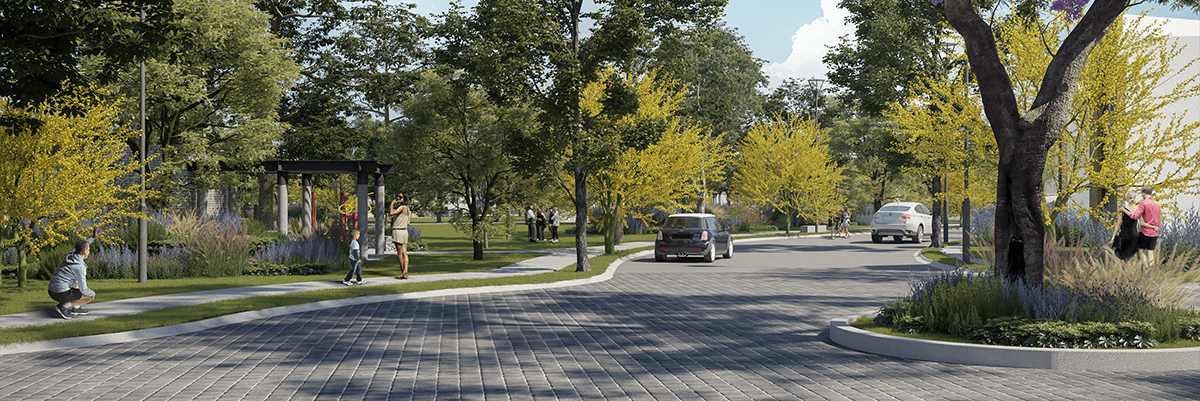 Además sus amplias vialidades y servicios ocultos ofrecen una imagen urbana limpia y ordenada que ofrecen un respiro de la ajetreada vida del centro de la ciudad.
