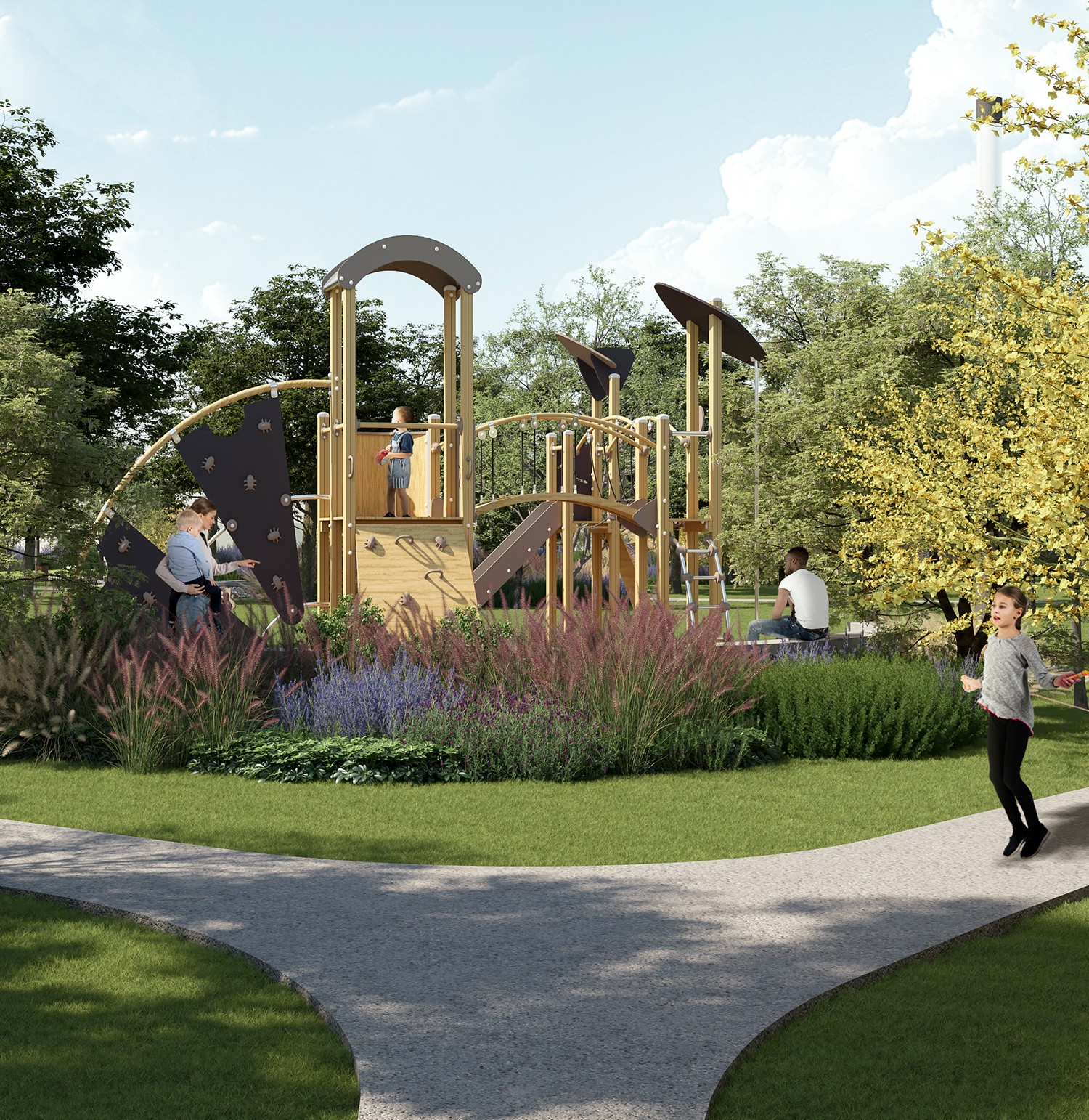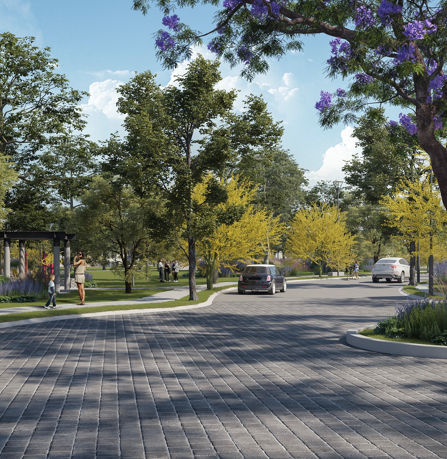 Cuenta con amplias áreas verdes arboladas que brindan un ambiente natural y sereno. Estas zonas están pensadas para fomentar la convivencia familiar y el esparcimiento, donde tanto niños como adultos pueden disfrutar de actividades al aire libre en un entorno seguro y agradable.